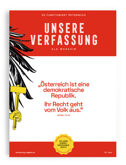 Im Oktober 2020 feierte Österreichs Bundesverfassung ihren 100. Geburtstag. Aus diesem Anlass haben wir unsere Verfassung auf ganz neue Weise herausgebracht: als Magazin, in zeitgemäßem und gut lesbarem Design. Ergänzt um einen umfangreichen Infografik-Teil mit dem Titel „Österreich verstehen“